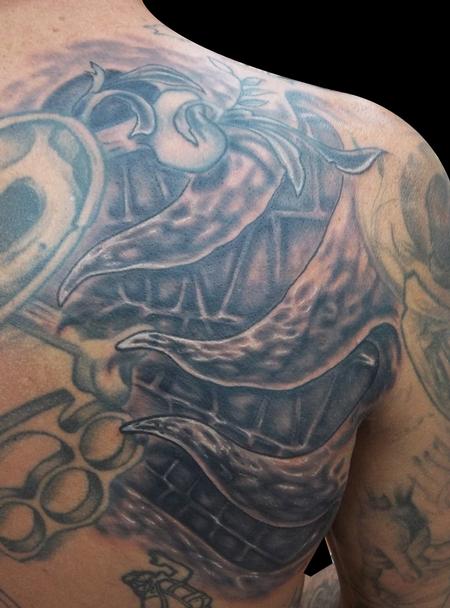 This was a cool single session tattoo done on a cool dude from Denver. I did this custom bio organic tattoo around some existing work and it is just the start of a much larger project. I am going to add another bio formation on the other side and also rework the existing tattoos adding some texture and some contrast to meld it all together as one cohesive peice, Should be fun. This tattoo addition took me around seven hours to draw on and tattoo. I did go over some of the existing work and reline it and add some shading and white highlites.