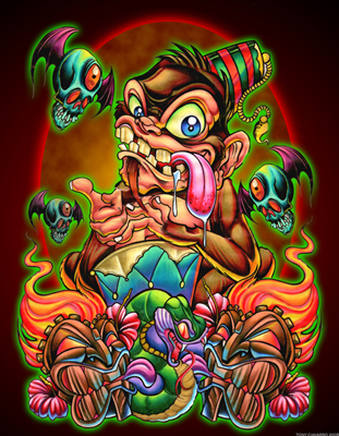 This was done with colored pencil, and photoshop for the back ground. Prints for sale. www.stinkymonkeybrand.com
