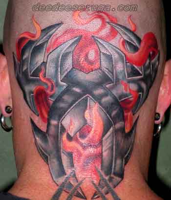 3-d tribal with flames tattoo