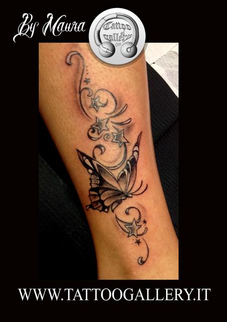 Tattoo farfalla con stelline su caviglia