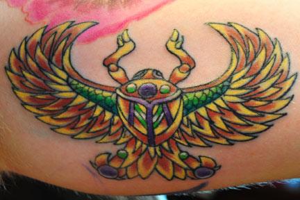 scarab beetle tattoo on the inner bicep