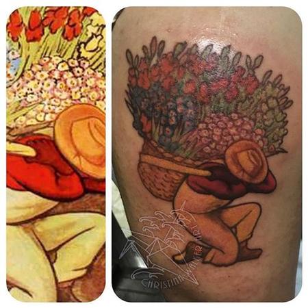 a fun tattoo replicating a Diego Rivera painting