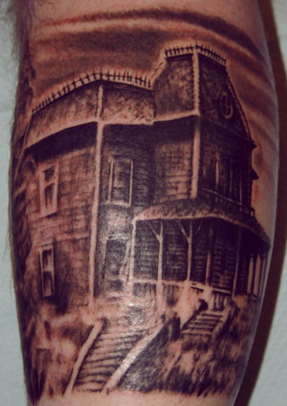 The Norman Bates motel from the movie Psycho, done at the Boston Tattoo Convention.