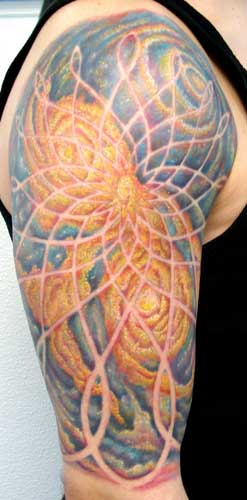 negative fibonacci spiral overlaying two spiral galxies and a binaural on the inside of the arm...this project was great fun to do, as i'll hope to work more with this client when he decides what his second tattoo will be.
