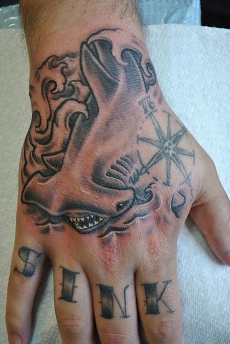 This was on my wifes boss. It was a fun tattoo. I would love to tattoo more sharks.