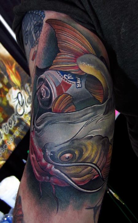 River Catfish color arm with Pabst blue ribbon can tattoo done @ this years Minneapolis tattoo arts convention.