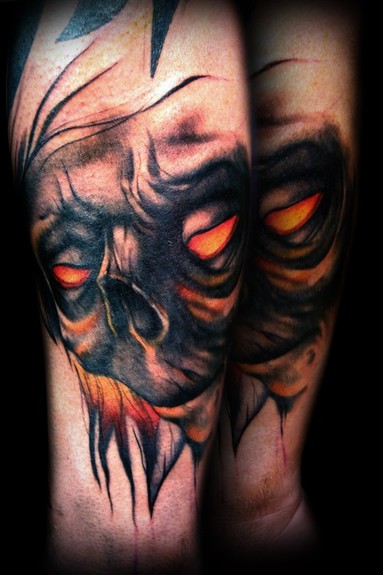 Someone's a gloomy Gus! This was wicked wicked fun. I don't do a lot of scary tattoos, or largescale tattoos. But this guy is big, and I guess he would be scary if I hadn't made up a story in my head where he dropped his ice cream. This is the start of a half sleeve with lots more to come.
