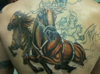 Greek God helios and his chariot. this of course is still in progress and also to be a cover up, Good start