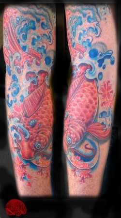 This is the start of a sleeve of a koi a big wave and a jellyfish. More to come.