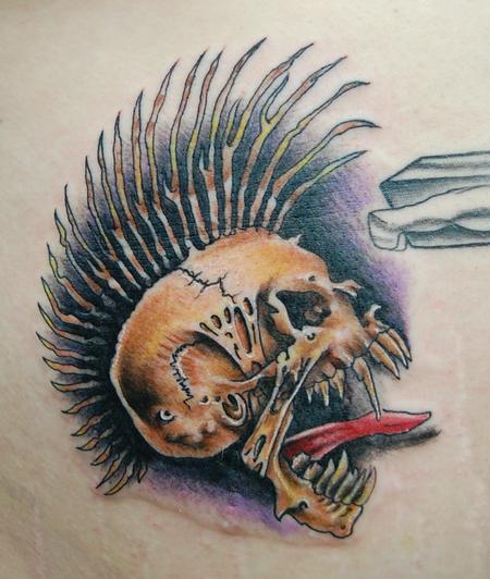Exploited Skull on my good friend and fellow Tattooer Greg Woodrow!! Check Him out Rad Traditional artist