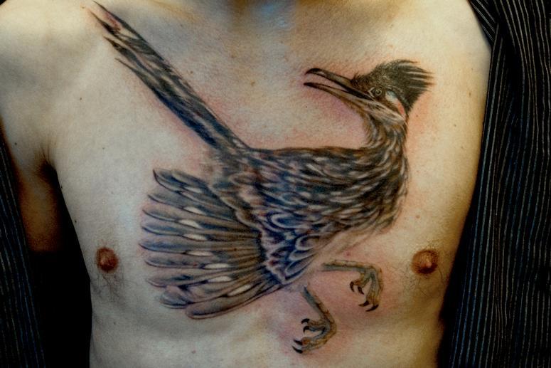 Keywords: No Outline, Soft, Black and Gray, Roadrunner, Bird, Chest Piece