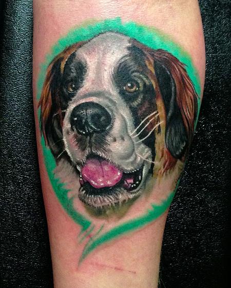 I had an amazing time tattooing this St. Bernard for a huge dog lover!