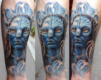 Avatar Tattoo after the second session 1° PLACE BEST OF SHOW MILANO TATTOO CONVENTION 2010 Portrait color tattoo realistic from the movie Avatar Neytiri, forearm position, Ritratto tatuaggio a colori realistico Neytiri dal film Avatar, posizione avambraccio, Da Cosa Nasce Cosa, Michele Turco, Tatuaggi Piacenza, Italy