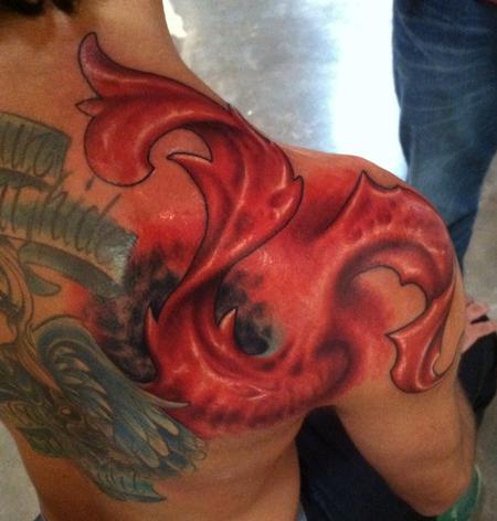 freehnaded this color bio oraganic leaf tattoo while guest spotting in Philidelphia at Art Machine Productions tattoo studio. was very difficult to get good photos of this tattoo. thanks for looking.