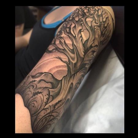 Black and grey tree half sleeve
