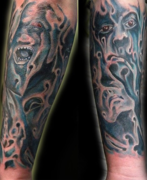 Tis is the back half of the 30 Days of night portrait piece I did a while ago.Zach wanted burning souls and this is what I came up with to finish his half sleeve.