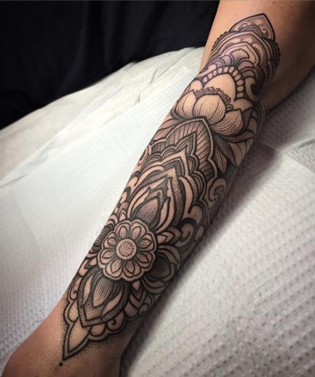 Decorative lotus forearm tattoo