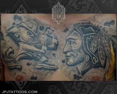 Fighting Irish and Blackhawks Chest Piece, Black and grey, Stone Work