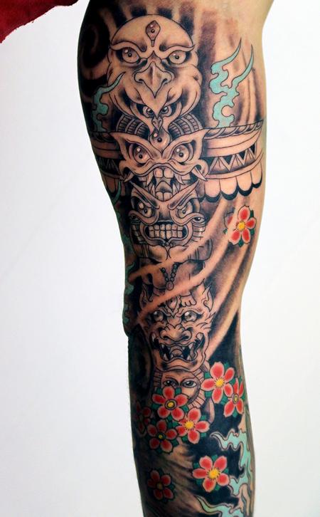 freehand totem pole tattoo by skeleton man of skeleton man tattoo witney near oxford. instagram @skeleton_man