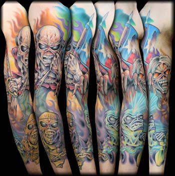 My clent Mike wanted to dedicate his arm to an Iron Maiden tribute.....pretty sick if you ask me. Mike plays guitar in an awesome metal band named Jacknife, you should check them out.