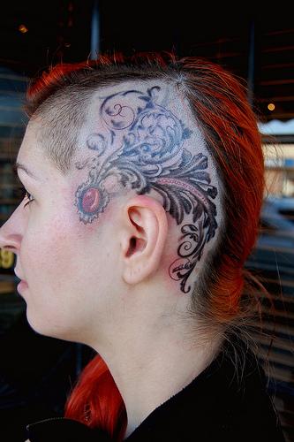 Here's a filigree tattoo on my friend Nell (Natalia's) head. She's also a bad ass artist from New York. Check out her shop, Beaver Tattoo.