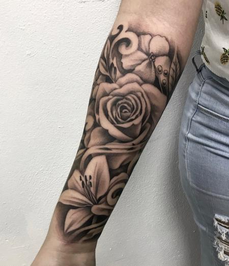 Black and Gray flowers on arm