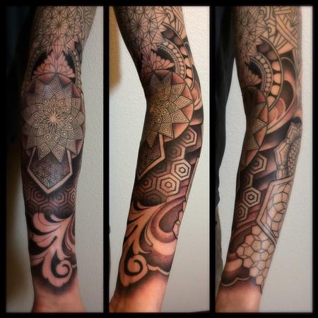 This has been such a fun project! Combining geometric patterns with flowing lines and bold shading. Looking forward to finishing this sleeve soon.
