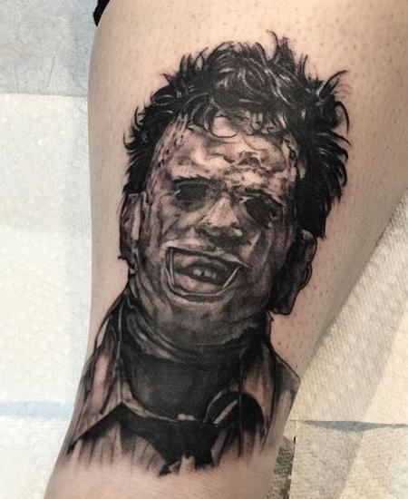 Leatherface Portrait Black and Gray Tattoo