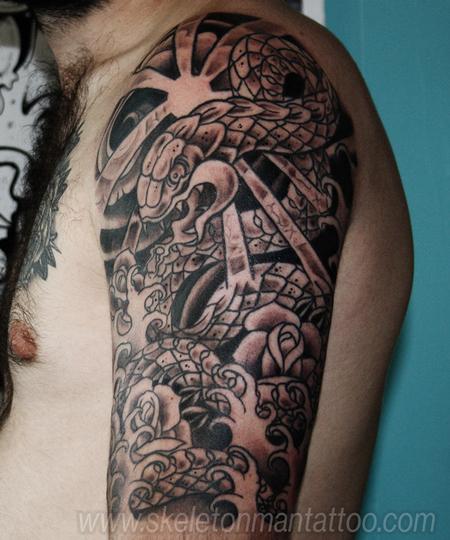 im a big fan of drawing snakes off the top of my head. This was tattooed over two sessions.I look forward to seeing fully healed. For appointments with myself, please use the contact on this site. skeleton man tattoo is located in witney which is near to oxford. thanks for checking out my work