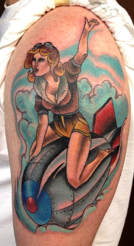 Pin-up riding a bomb