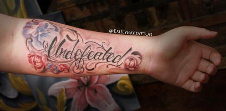 undefeated lettering with flowers and filigree