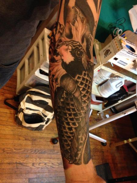 Japanese koi fish tattoo inspired by Japanese artist Kuniyoshi.