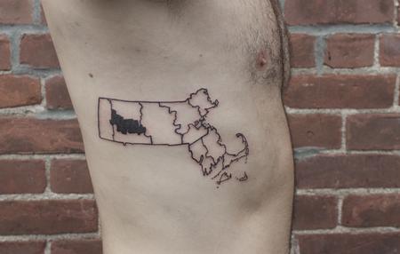 Massachusetts outline tattoo on ribs