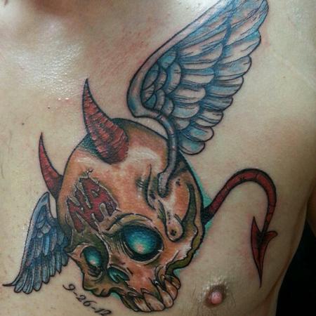 Skull with wings. Narcotics Anonymous logo inbedded into the skull.