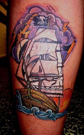 New school pirate ship tattoo