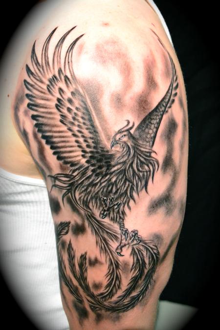 A fire Phoenix i Spiced up and added some smoke to. Had fun with this piece. Him and his girl were so stoked on it!