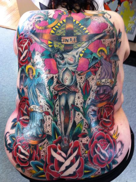 classic tattoo, cleveland, ohio, christ, cross, angels, traditional tattoo,color