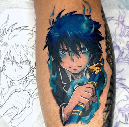 Blue Exorcist tattoo on the leg