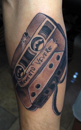 Fun little vintage black and grey cassette tape tattoo.
